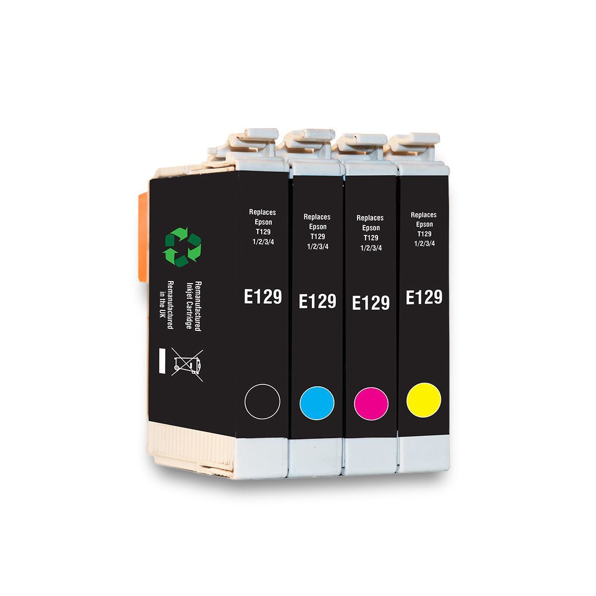 Epson T129 Black, Cyan, Magenta & Yellow Recycled Ink Cartridge Multipack is an environmentally friendly alternative to its original counterpart. It is fully compatible with the following printers: Epson Stylus Office B42WD, Epson Stylus Office BX305F, Epson Stylus Office BX305FW/Plus, Epson Stylus Office BX320FW, Epson Stylus Office BX525WD, Epson Stylus Office BX535WD, Epson Stylus Office BX625FWD, Epson Stylus Office BX630FW, Epson Stylus Office BX635FWD, Epson Stylus Office BX925FWD, Epson Stylus Office BX935FWD, Epson Stylus SX230, Epson Stylus SX235W, Epson Stylus SX420W, Epson Stylus SX425A, Epson Stylus SX430W, Epson Stylus SX435W, Epson Stylus SX438W, Epson Stylus SX440W, Epson Stylus SX445W, Epson Stylus SX525WD, Epson Stylus SX535WD, Epson Stylus SX620FW, Epson Workforce WF-3010DW, Epson Workforce WF-3520, Epson Workforce WF-3530DTWF, Epson Workforce WF-3540DTWF, Epson Workforce WF-7015, Epson Workforce WF-7515, Epson Workforce WF-7525. You could also save up to 70% on your print costs in comparison to the Epson original version, without compromising on performance and quality.